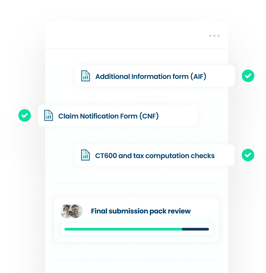 We also provide transparency around the support and services you’ll receive so you can be confident what is included. (E.g. platform access, claim drafting, HMRC enquiry support, etc.)
